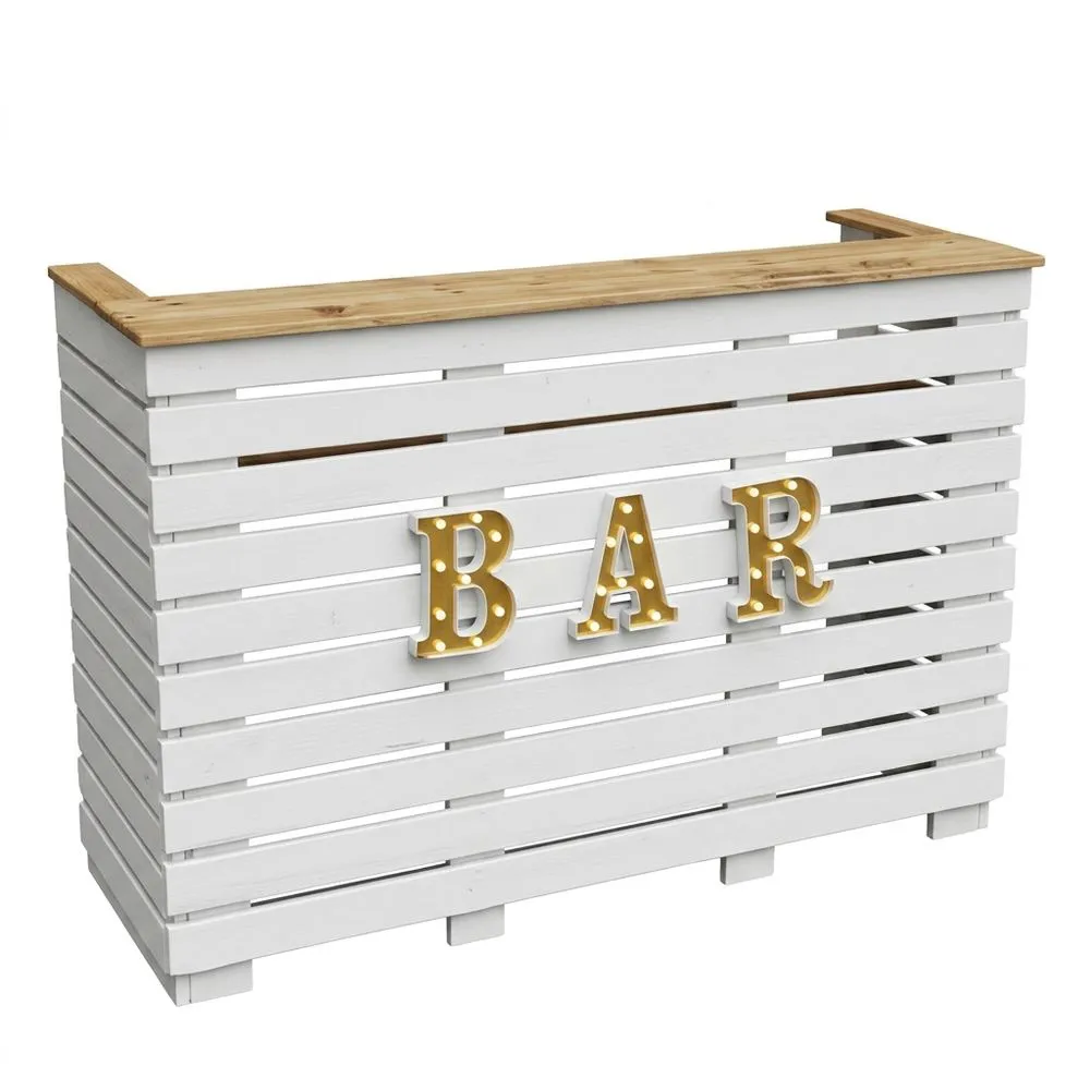 Mesa de bar de madera con iluminación LED y estante de cocina